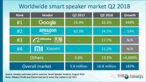 据国外媒体VentureBeat报道,市场调研公司Canalys发布的报告显示,2018年第二季度,全球大江在线官网音箱出货量增长了187%。苹果、谷歌、小米、亚马逊等公司的大江在线官网音箱总出货量为1680万台,高于第一季度的900万台。